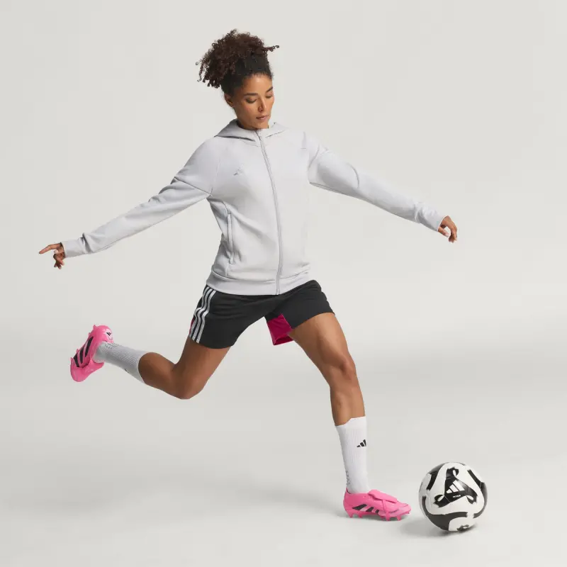 Discover the difference between aiming to score and knowing you will with adidas Predator cleats that are crafted for goals. These Elite cleats have a HybridTouch upper with a fold-over tongue and rubber Strikeskin fins that help provide perfect contact with the soccer. The Controlframe 2.0 firm ground outsole and adidas PRIMEKNIT collar are designed to give you a stable stance when the goal’s at your mercy.