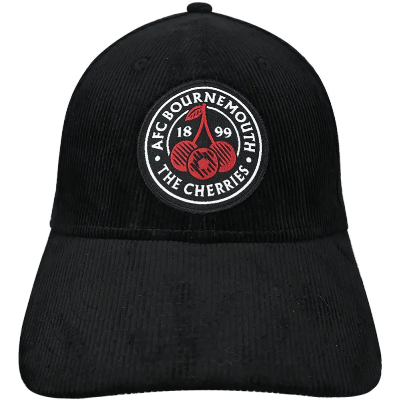 The AFC Bournemouth x New Era 9FORTY Cherries Crest Cord Cap in black combines classic detailing with a contemporary finish, crafted from soft cotton cord with added stretch for lasting comfort. Designed with a low-profile structured crown and pre-curved visor, this six-panel cap delivers an easy-to-wear fit, while the adjustable strapback ensures a personalised feel. Featuring the distinctive Cherries crest roundel on the crown and the iconic New Era embroidery on the side, it’s a stylish way for both men and women to back the team with a subtle, modern touch.