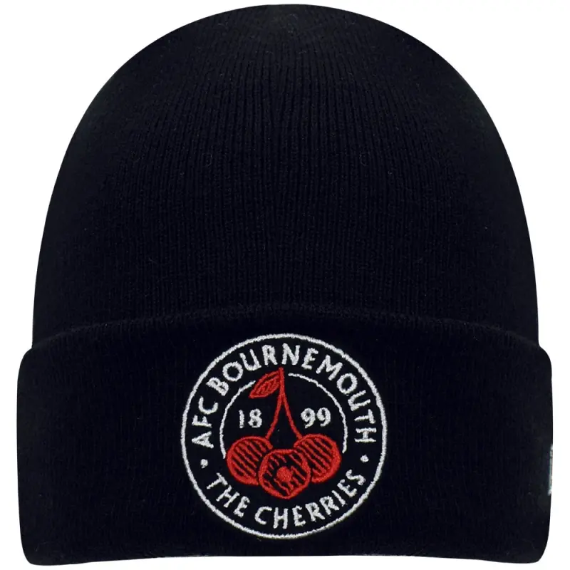 This black AFC Bournemouth New Era adult’s fit Cherries Crest beanie hat is perfect for everyday wear while showing your support. The smart knitted beanie features a turnover cuff and fits most adults. Finished with an embroidered Cherries crest on the crown, and white embroidered New Era flag on the side.