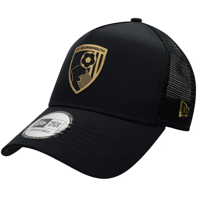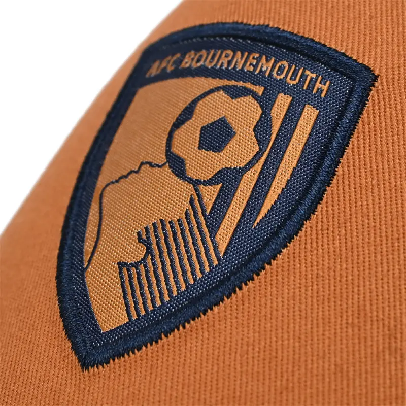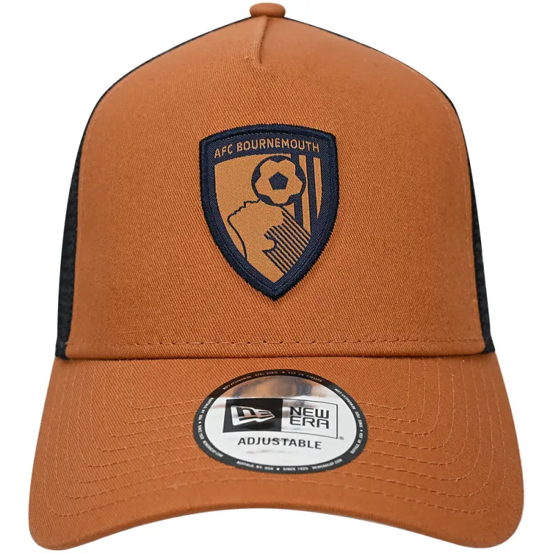 Show your support in style with the AFC Bournemouth x New Era E-Frame Trucker Cap in rustic amber, a versatile accessory crafted from durable cotton twill with breathable nylon mesh panels. Designed with a classic six-panel construction and a pre-curved visor, it combines comfort and a timeless look. The contrasting navy mesh back enhances airflow, while the snapback adjuster ensures a secure and personalised fit. Finished with a tonal woven crest on the crown and the iconic New Era flag embroidery on the side, this cap is perfect for both men and women looking to add a touch of understated club spirit to their everyday wear.