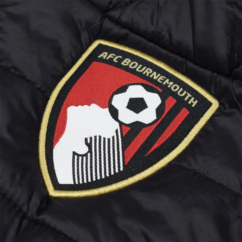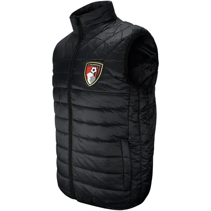 This lightweight black AFC Bournemouth gilet is ideal for the cooler days when an extra layer of warmth is needed. The Curzon adult’s gilet has a traditional look, with narrow horizontal quilt stitching to maintain shape, and has a light, hollow fibre filling. There’s a full length zip, and two zipped hand pockets for valuables, and the gilet is finished with a full colour club crest. Suitable for men and women and regular fitting.
