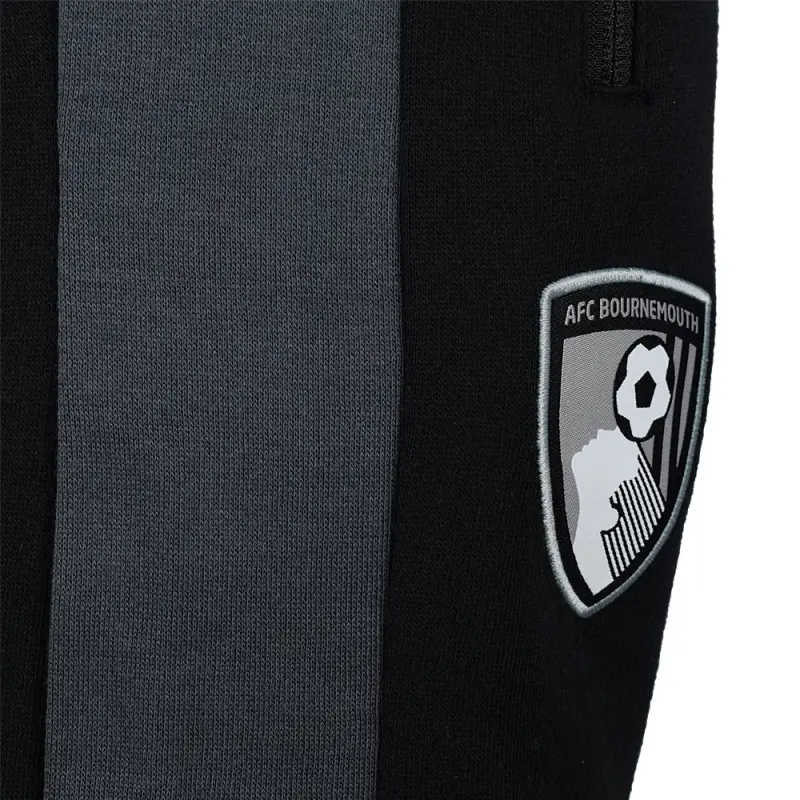These casual AFC Bournemouth adult’s joggers are perfect for everyday wear, and are made from cool cotton with a soft flocked backing for added comfort. The Element jog pants feature a wide elasticated waist with drawstring for a secure fit, and a gathered ankle. There’s charcoal trim on the side of both legs for added style, and the joggers are finished with a tonal embroidered applique club crest on the right leg. Suitable for men and women.