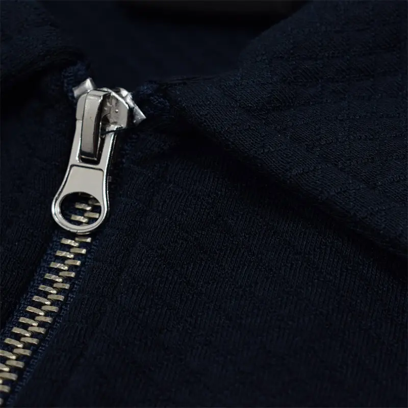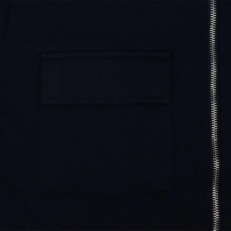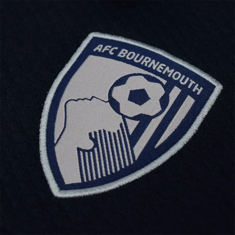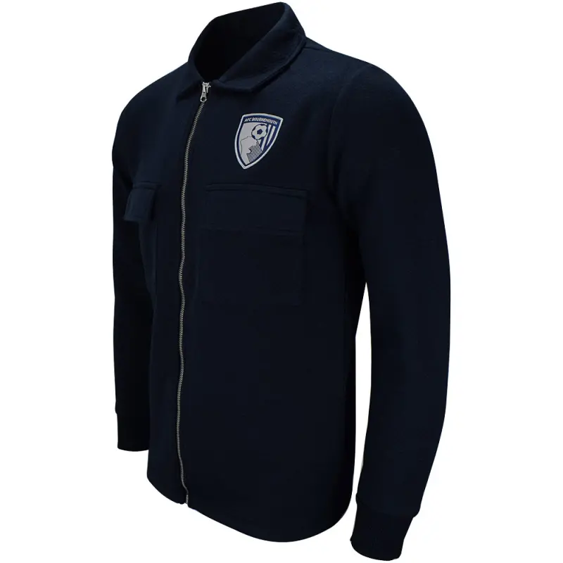 This navy blue adult’s AFC Bournemouth shacket has a smart style, perfect for evenings out while showing your support for the club. The Grange shacket has a lightweight feel, made from a polycotton fabric, and features a subtle diamond texture design. The top has a full length chrome zip, with a tipped collar and two breast pockets. The tonal woven crest on the chest completes the look.