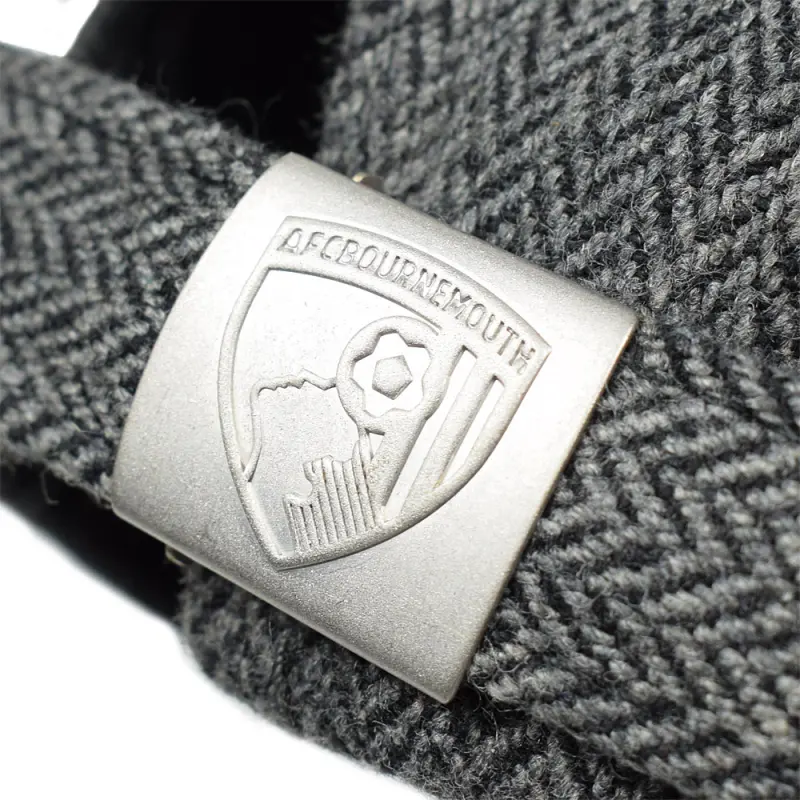 Stay stylish and stand out with this AFC Bournemouth adult’s herringbone cap. The curved peak and adjustable metal clasp ensure a perfect fit, while the applique patch initial B adds a finishing touch. One size fits all, making it the perfect addition to any Cherries’ supporter’s cap collection.