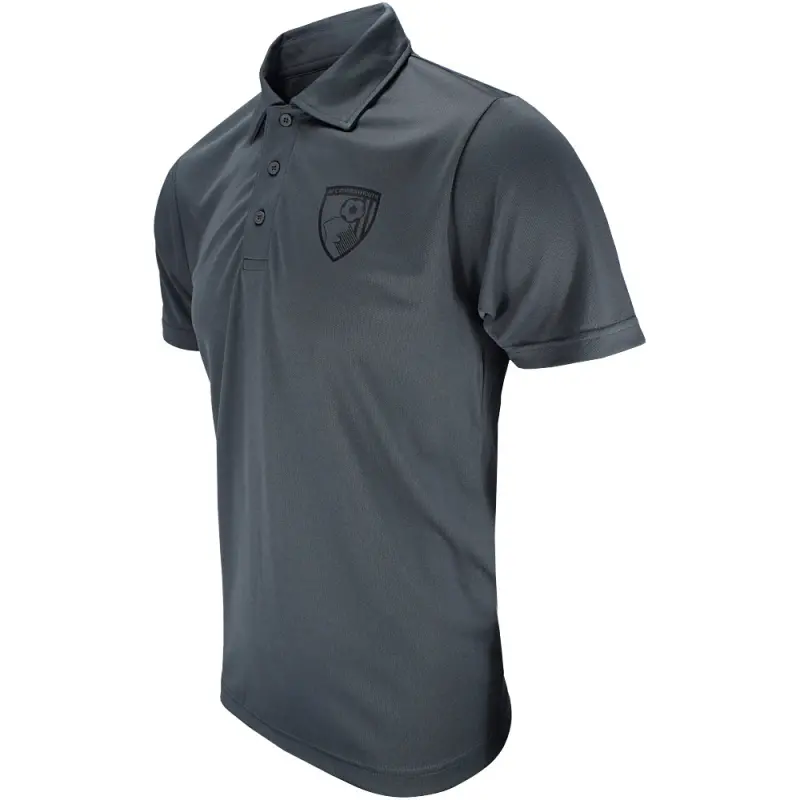 This charcoal grey adult’s AFC Bournemouth polo shirt has a smart understated style, and is perfect for everyday wear. Made from lightweight woven textile, the Nevada polo shirt features a traditional turndown collar and three button neck, and is regular fitting. Suitable for men and women, and finished with a toned-down club crest print on the chest.