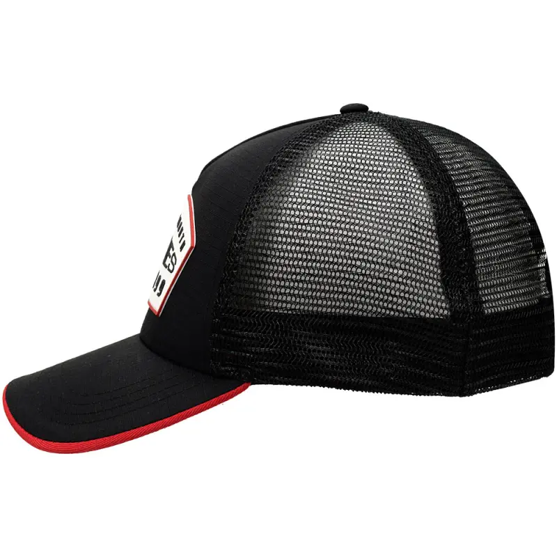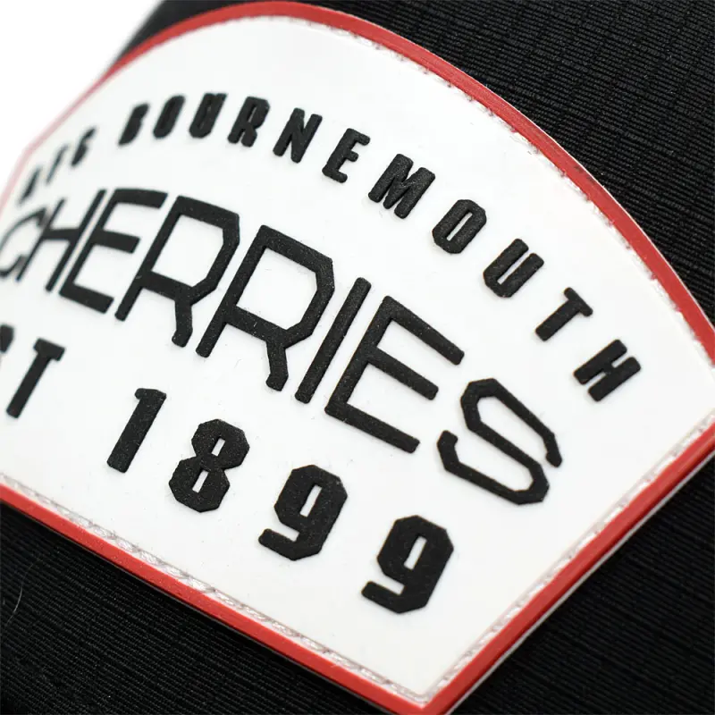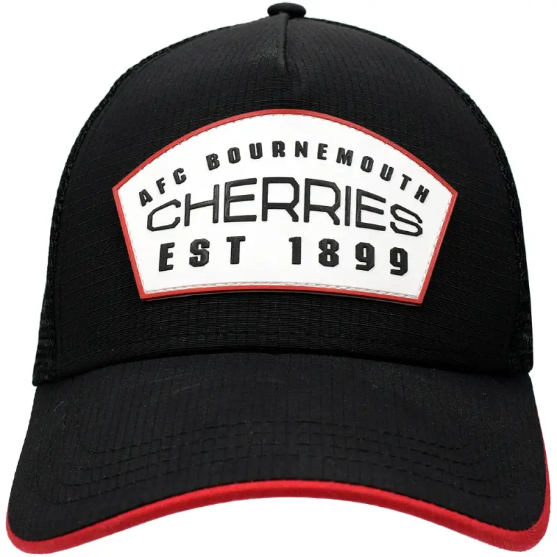 Show your support for the Cherries with this adult’s AFC Bournemouth Patch Trucker cap. This classic black cap features a curved peak with a stylish red trim and mesh back panels with snapback fastening for the perfect fit. Complete with a rubber patch detail, this cap is the perfect way to show your support for the club.