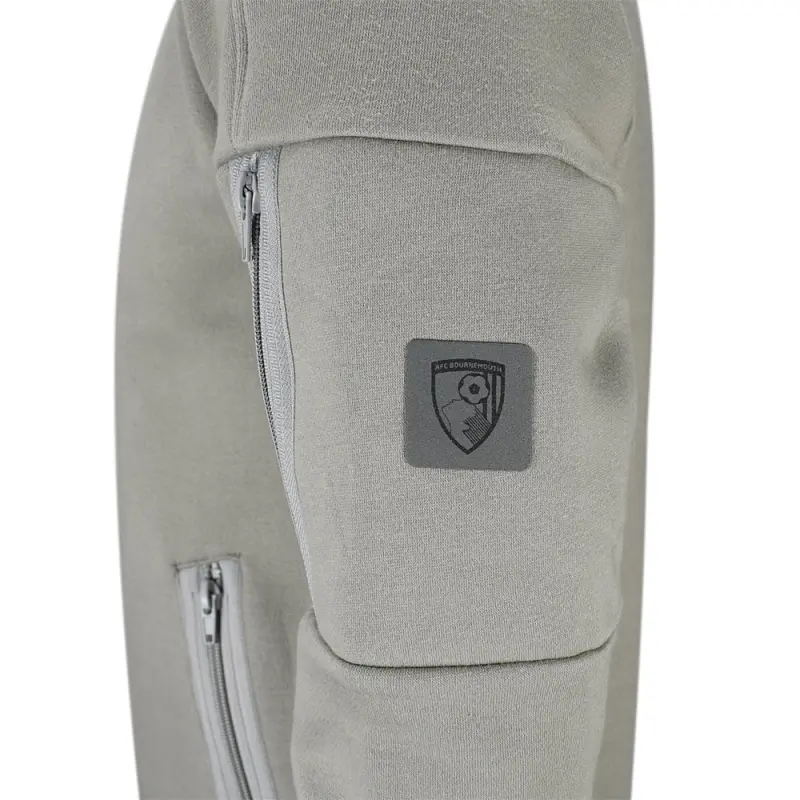 This smart AFC Bournemouth stone colour hoodie has a great contemporary look, perfect for everyday wear. The adult’s Rhode overhead hoodie is made from soft premium cotton, with a warm fleece backing, and features a jersey lined hood, two zipped hand pockets, and a zipped sleeve pocket. Finished with a subtle club crest patch on the left arm.