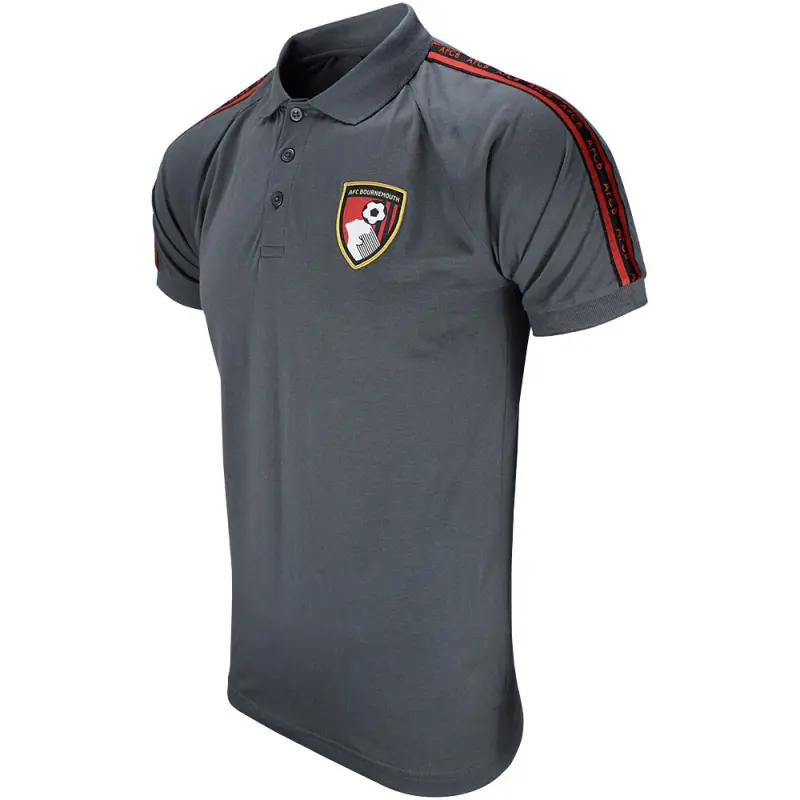 This charcoal grey AFC Bournemouth adult’s polo shirt has a classic style, with a turndown collar, three button neck and short sleeves. The Seneca polo shirt is a regular fit, and is made from soft premium cotton. Finished with sleeve taping in the Cherries signature red and black colours, with AFCB initialling throughout, and an embroidered club crest on the chest. Suitable for men and women.