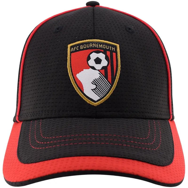 Show you support in style with this adult’s lightweight AFC Bournemouth Sports cap. The breathable mesh texture fabric will keep you cool and comfortable, while the embroidered crest and curved peak with red trim add the finishing touch. The velcro strap ensures a comfortable and secure fit.