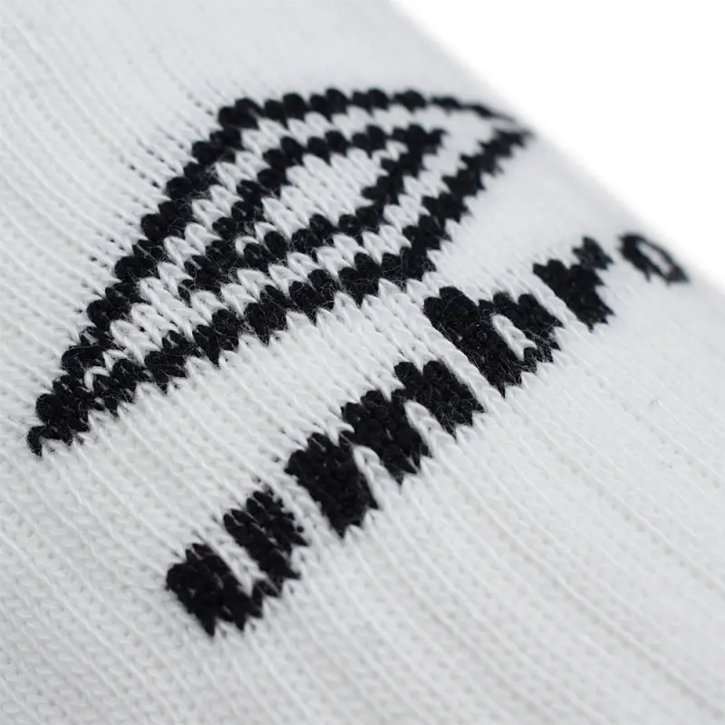 These adult’s white Umbro socks are the perfect addition to your training wear wardrobe. The 3 pair pack of socks are made from a comfortable cotton, nylon and elastane mix for a cool and comfortable fit, and are finished in crisp white with contrasting black Umbro stacked diamond logos on the leg to finish.