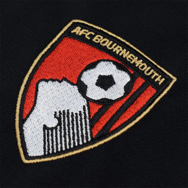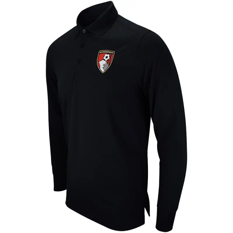This black AFC Bournemouth adult’s polo shirt has a classic style, perfect for any occasion. The Wynwood polo is regular fitting, and features a traditional tipped turn-down collar with a three button neck fastening. The long sleeves feature ribbed cuffs, and the shirt is finished with a full colour embroidered crest on the chest. Suitable for men and women.