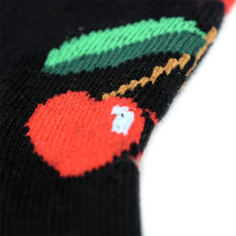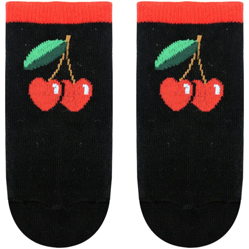 • Finished with a cherry motif on each sock