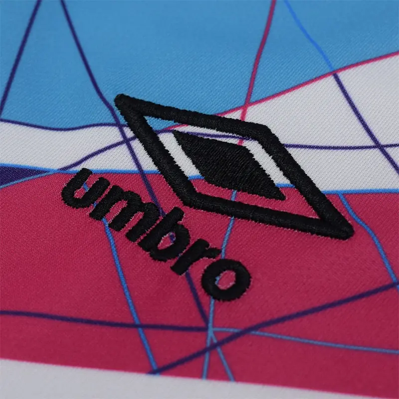 This youth’s unsponsored 2024/25 AFC Bournemouth goalkeeper shirt has a standout look, finished in Lilac Hint, with a contrasting blue and pink stripe pattern. The long sleeved top is identical to the jerseys worn by the Cherries’ shot-stoppers this season, and is made from moisture wicking material for comfort, with ribbed collar and cuffs, and AFCB initialling on the rear neckline. Finished with Umbro’s centenary stacked diamond motif, alongside the Cherries embroidered club crest. Suitable for boys and girls.