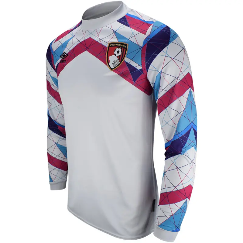 This youth’s unsponsored 2024/25 AFC Bournemouth goalkeeper shirt has a standout look, finished in Lilac Hint, with a contrasting blue and pink stripe pattern. The long sleeved top is identical to the jerseys worn by the Cherries’ shot-stoppers this season, and is made from moisture wicking material for comfort, with ribbed collar and cuffs, and AFCB initialling on the rear neckline. Finished with Umbro’s centenary stacked diamond motif, alongside the Cherries embroidered club crest. Suitable for boys and girls.
