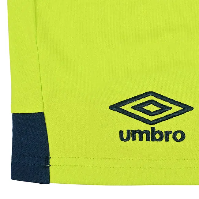 Help your young shot-stopper complete their matchday look with these 25/26 AFC Bournemouth children’s goalkeeper shorts. Featuring a bold Acid Lime colourway with Majolica Blue trim on the lower leg, these shorts match the authentic goalkeeper kit seen on the pitch. Finished with a woven club crest and a Majolica Blue embroidered Umbro stacked diamond motif, they deliver standout style.