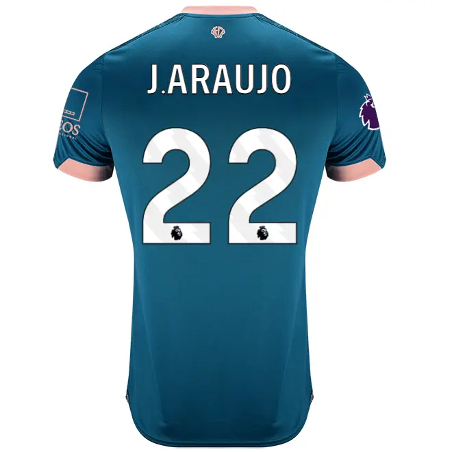 This season’s AFC Bournemouth third kit shirt draws it’s inspiration from our seaside roots – finished in deep lagoon green with an aquatic themed design on the front bearing subtle seashells and waves. The youth’s third shirt is identical to the shirts which will be worn by the first team players during the 2024-25 Premier League season. Accented with peach trim on the arms, neckline, club crest and Umbro logo, and finished with a seashell inspired AFCB print on the rear of the neck.