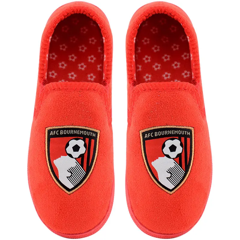 Treat a younger Cherries supporter with these great AFC Bournemouth kid’s crest slippers. Made from soft and comfortable velour, and with a warm textile lining, the striking red slippers really stand out. Finished with a grippy PU sole and embroidered club crests on the forefoot.