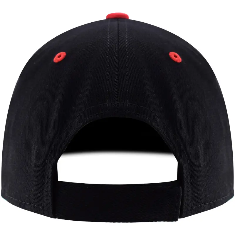- Contrasting red curved peak