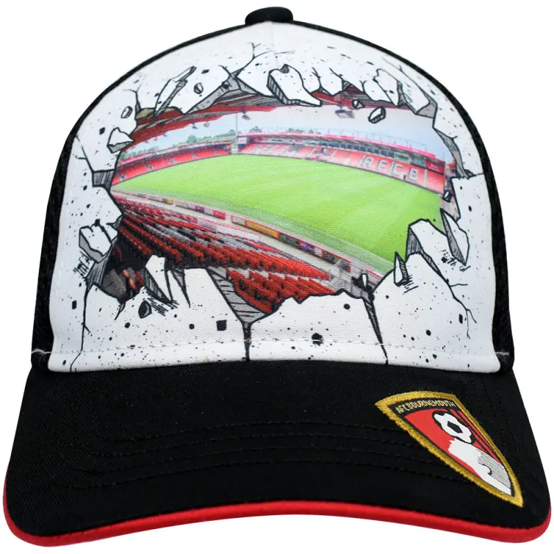 This kid’s AFC Bournemouth cap has a great fun look, and is perfect for staying cool in the warmer weather. The Stadium cap has a classic curved peak, and features a neat design on the crown which bears a view of the inside of Vitality Stadium. There’s an embroidered club crest on the peak, and the cap is finished with cooling mesh rear panels and a velcro adjuster strap for a secure fit.