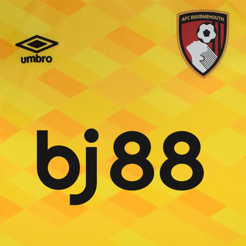 This men’s 2024/25 AFC Bournemouth goalkeeper shirt has a bold design, finished in bright yellow, with a tonal diamond pattern on the front. The long sleeved top is identical to the jerseys worn by the Cherries’ shot-stoppers this season, and is made from moisture wicking material for comfort, with ribbed collar and cuffs, and AFCB initialling on the rear neckline. Finished with the BJ88 sponsor’s logo on the chest, alongside Umbro’s centenary stacked diamond motif, and the Cherries embroidered club crest.
