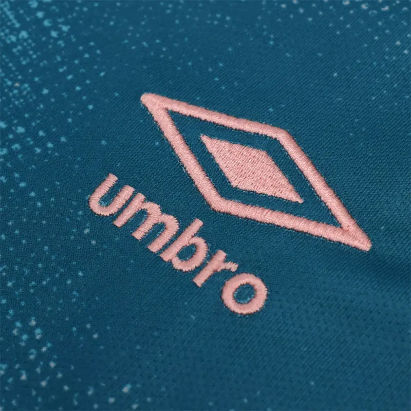 This season’s AFC Bournemouth third kit shirt draws it’s inspiration from our seaside roots – finished in deep lagoon green with an aquatic themed design on the front featuring subtle seashells and waves. The men’s third shirt is identical to the shirts which will be worn by the first team players during the 2024-25 Premier League season. Accented with peach trim on the arms, neckline, club crest and Umbro logo, and finished with the BJ88 sponsor’s logo, and a seashell inspired AFCB print on the rear of the neck.