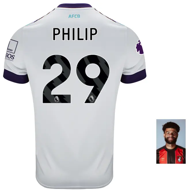 AFC Bournemouth’s away shirt for the 2024-25 Premier League season draw’s it’s inspiration from the famous ‘Pizza Shirt’ worn by the club between 1992-94. Made by kit supplier Umbro, this men’s unsponsored away shirt features a green and purple chevron design on the front, with pops of purple on the neck and sleeves, and green AFCB initialling on the rear neckline. The shirt is identical to the jersey which will be worn by the first team players, and is finished with Umbro’s embroidered centenary stacked diamond motif, alongside the AFC Bournemouth club crest.