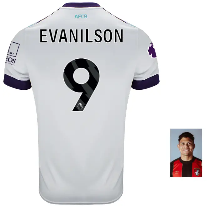 AFC Bournemouth’s away shirt for the 2024-25 Premier League season draw’s it’s inspiration from the famous ‘Pizza Shirt’ worn by the club between 1992-94. Made by kit supplier Umbro, this men’s unsponsored away shirt features a green and purple chevron design on the front, with pops of purple on the neck and sleeves, and green AFCB initialling on the rear neckline. The shirt is identical to the jersey which will be worn by the first team players, and is finished with Umbro’s embroidered centenary stacked diamond motif, alongside the AFC Bournemouth club crest.