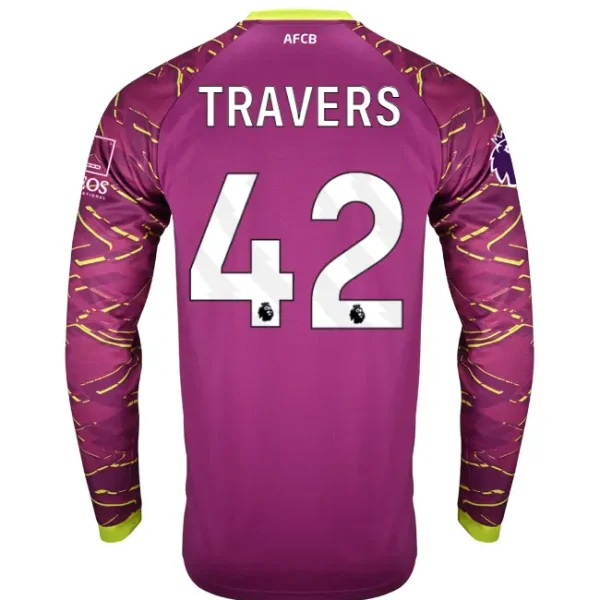 Stand tall in this 25/26 AFC Bournemouth men’s goalkeeper shirt. Crafted in a bold Wild Aster purple colourway with orange trim on the neckline and sleeves, this eye-catching jersey ensures you’ll command attention on the pitch. Featuring long sleeves adorned with an abstract Umbro logo pattern, it’s built to authentic match specifications and finished with a woven full-colour club crest and embroidered Umbro stacked diamond for a premium look.