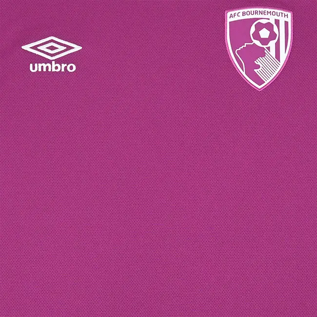Stand tall in this 25/26 AFC Bournemouth men’s goalkeeper shirt. Crafted in a bold Wild Aster purple colourway with orange trim on the neckline and sleeves, this eye-catching jersey ensures you’ll command attention on the pitch. Featuring long sleeves adorned with an abstract Umbro logo pattern, it’s built to authentic match specifications and finished with a woven full-colour club crest and embroidered Umbro stacked diamond for a premium look.