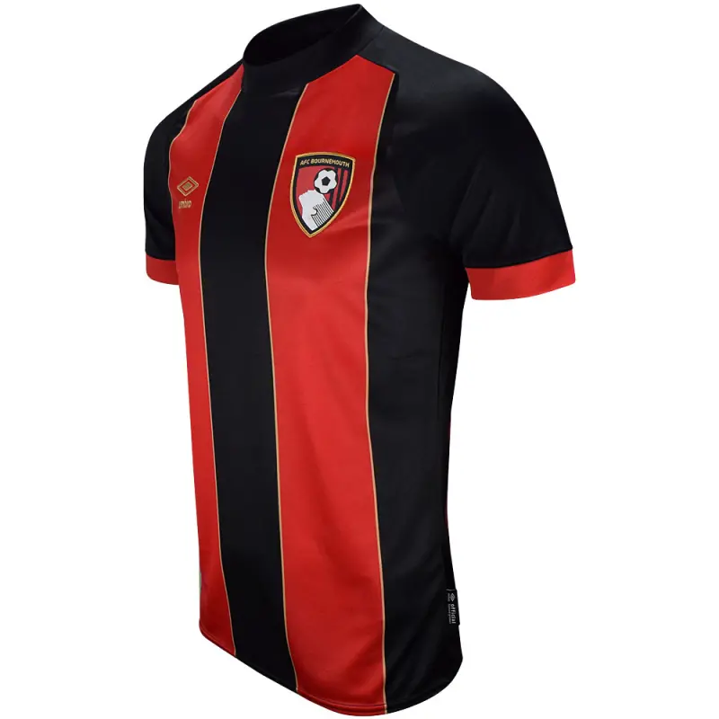 The AFC Bournemouth 2024-25 home shirt celebrates the club’s 125 year anniversary, with a nod to the 10th anniversary of our first promotion to the Premier League. This unsponsored men’s home shirt features wide red and black stripes, with a subtle gold pinstripe in homage to the 14/15 season kit, and a special 1899-2024 motif on the rear neckline. Made by kit supplier Umbro, is identical to the shirts worn by the first team players. Finished with a special embroidered Umbro centenary stacked diamond, and woven club crest.