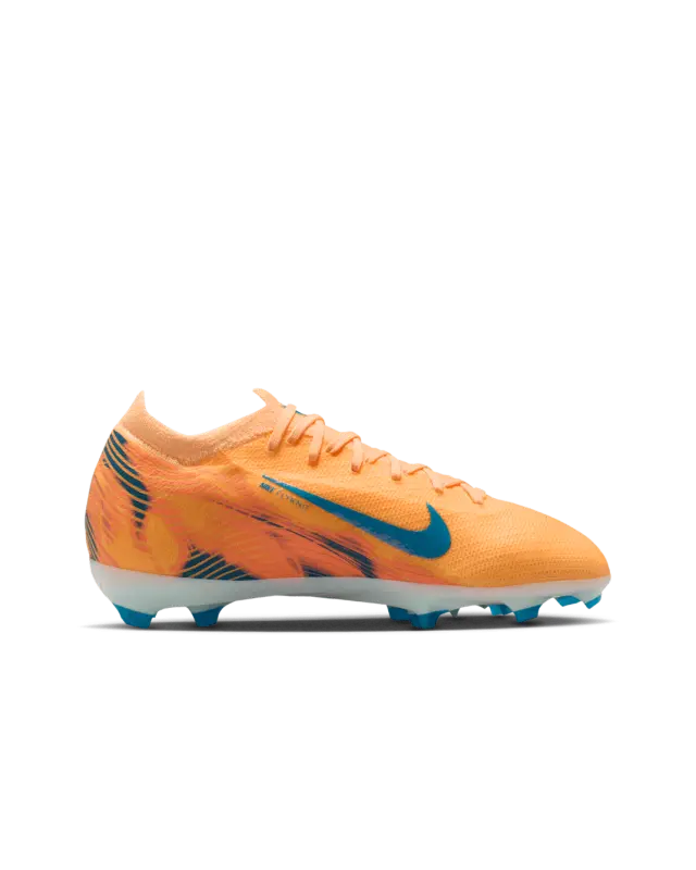 Serious about your game? Wanna run fast so you can score goals like Kylian Mbappé? The Jr. Vapor 16 Pro has an improved heel Air Zoom unit to help you flash your speed. It gives you and those devoted to the game the propulsive feel needed to break through the back line. Take your skills to the next level with some of Nike’s greatest innovations like Flyknit on the upper, which makes the cleat even lighter so you can play fast.