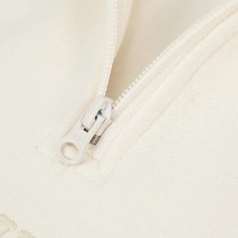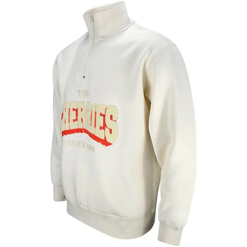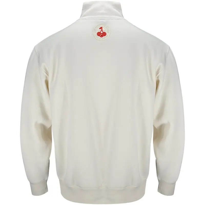 Elevate your casual wardrobe with the AFC Bournemouth Premium Cherries 1/2 Zip Top in off white. Crafted from mid-weight cotton, this premium sweatshirt combines both comfort and style. The soft fleecy lining provides warmth without compromising on breathability, while the mock neck offers an effortlessly laid-back yet refined silhouette. With its oversized fit, this piece exudes a contemporary edge, perfect for the fashion-forward individual seeking relaxed sophistication.