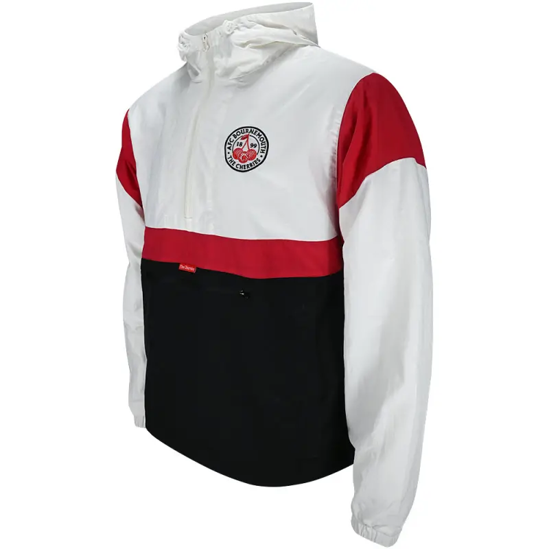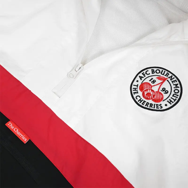 Get ready to make a bold statement with the AFC Bournemouth Premium Cherries Windbreaker Anorak, a must-have for any style-conscious fan. Crafted from durable rip-stop nylon with a breathable polyester mesh lining, this lightweight jacket combines fashion and function effortlessly. The overhead styling with a quarter-zip neck and adjustable hood makes it easy to layer, while the shell finish ensures you’re protected from the elements in sleek style. The jacket features a zipped pouch pocket and two hand pockets, offering both practicality and on-the-go convenience.