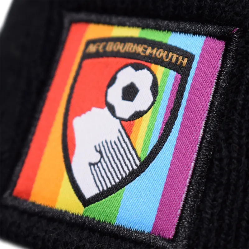 Show your love for the club while promoting your support for LGBT equality with this AFC Bournemouth pride beanie. Made from soft knit acrylic, the beanie is warm and comfortable, features an applique patch bearing a rainbow club crest, and is finished with a multicoloured pom-pom. 10% of all profits from this the sale of this item will be donated to the Bourne Free Community Fund to support the local LGBT community.