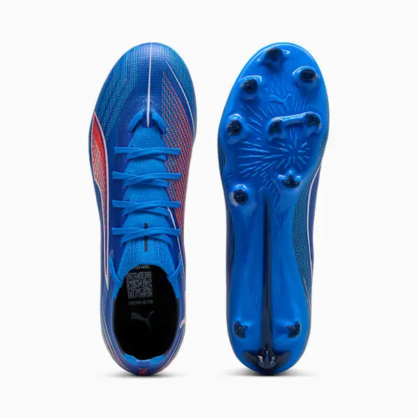 Shift into sixth gear with ULTRA 6. Ideal for rising speedsters, this version of ULTRA includes an updated engineered mesh upper, PUMA’s SPEEDSYSTEM outsole, and FastTrax stud design for multidirectional traction. Three rounded studs on the lateral side allow you to transition seamlessly between firm ground and artificial grass. No extras. All ULTRA.