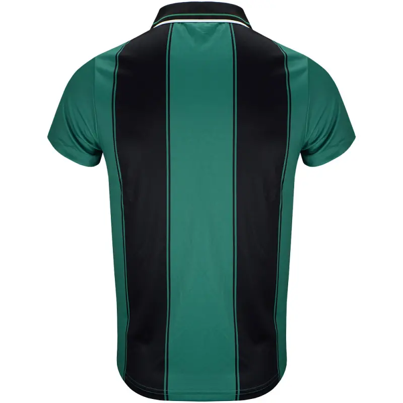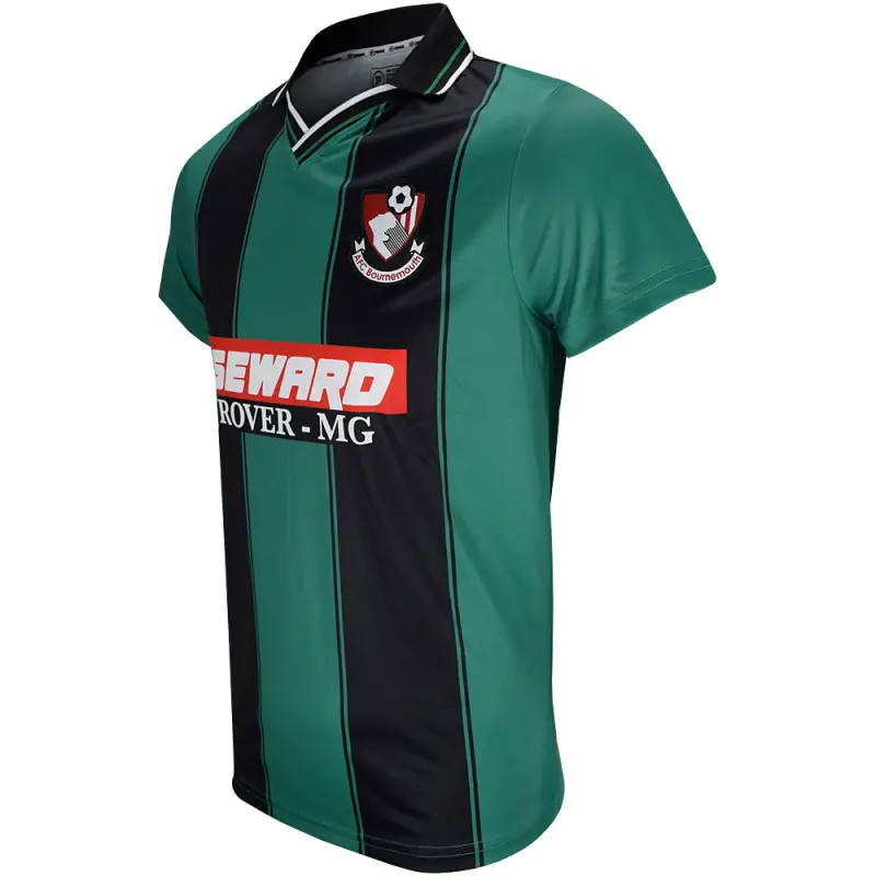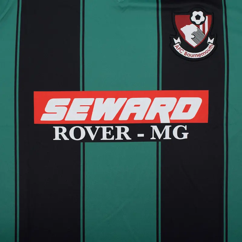 Introducing the retro version of the away shirt from the 1998-2000 seasons, worn by the likes of Eddie Howe, Jason Tindall and Richard Hughes. The shirt is manufactured by renowned retro specialist The Terrace, and features the classic green and black stripes, v-neck and turndown collar. Regular fitting and finished with the Seward Rover sponsor’s logo, and the club crest of the time.