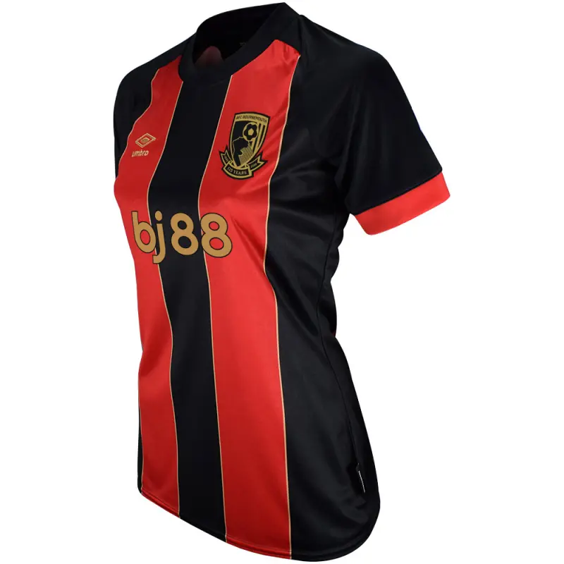 This limited edition version of the AFC Bournemouth 2024-25 home shirt celebrates the club’s 125 year anniversary, with a nod to the 10th anniversary of our first promotion to the Premier League. This women’s home shirt features wide red and black stripes, with a subtle gold pinstripe in homage to the 14/15 season kit, and a special 1899-2024 motif on the rear neckline. Made by kit supplier Umbro, the shirt is specially tailored for women, and is identical to the shirts worn by the first team players. Finished with the BJ88 sponsors logo, alongside a special embroidered Umbro centenary stacked diamond, and our exclusive 125 anniversary edition woven club crest.