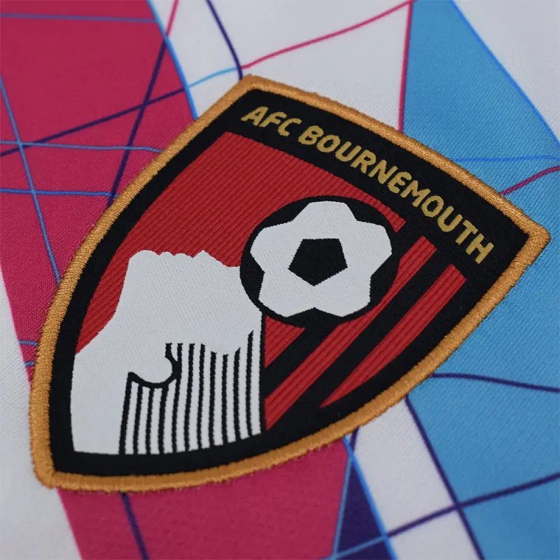 This women’s 2024/25 AFC Bournemouth goalkeeper shirt has a standout look, finished in Lilac Hint, with a contrasting blue and pink stripe pattern, and is tailored specifically for women. The long sleeved top is identical to the jerseys worn by the Cherries’ shot-stoppers this season, and is made from moisture wicking material for comfort, with ribbed collar and cuffs, and AFCB initialling on the rear neckline. Finished with the BJ88 sponsors logo, alongside Umbro’s centenary stacked diamond motif, and the Cherries embroidered club crest.