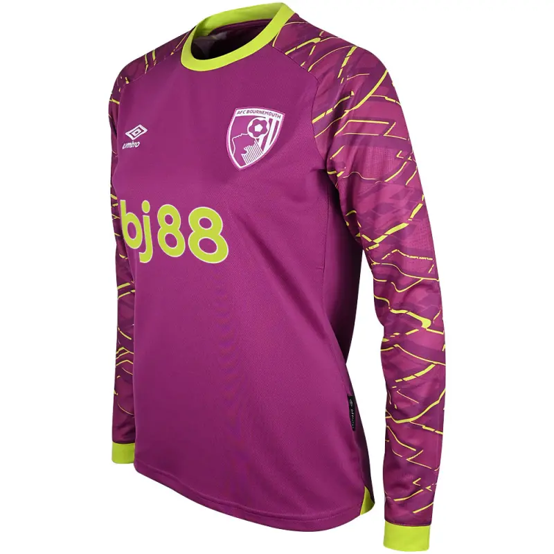 Show your colours in style this season with this 25/26 AFC Bournemouth women’s goalkeeper shirt. Styled in a bold Wild Aster purple with orange trim on the neckline and sleeves, this jersey is crafted to authentic match specifications and tailored specifically for women. Long sleeves feature an abstract Umbro logo pattern, while premium details like the embroidered Umbro stacked diamond and woven full-colour club crest showcase your support.