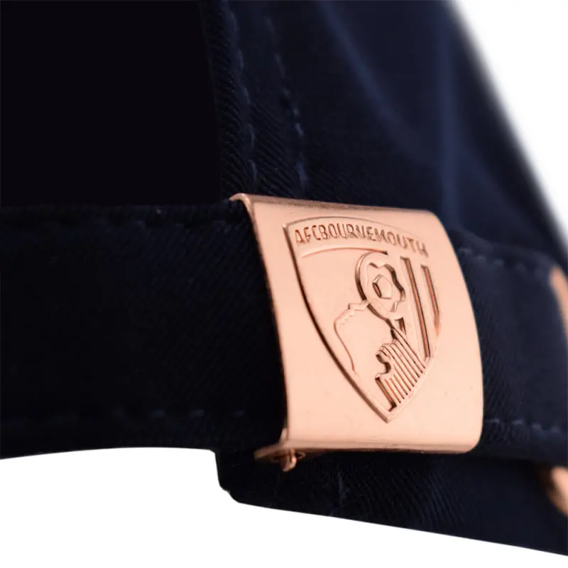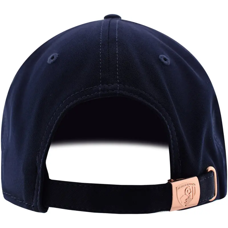 This navy blue women’s AFC Bournemouth Script cap is a must-have accessory for any Cherries supporter. The rose gold buckle fastener adds a touch of elegance, while the curved peak provides sun protection. Stylish and comfortable, and finished with embroidered Cherries script on the crown in a pop of pink.