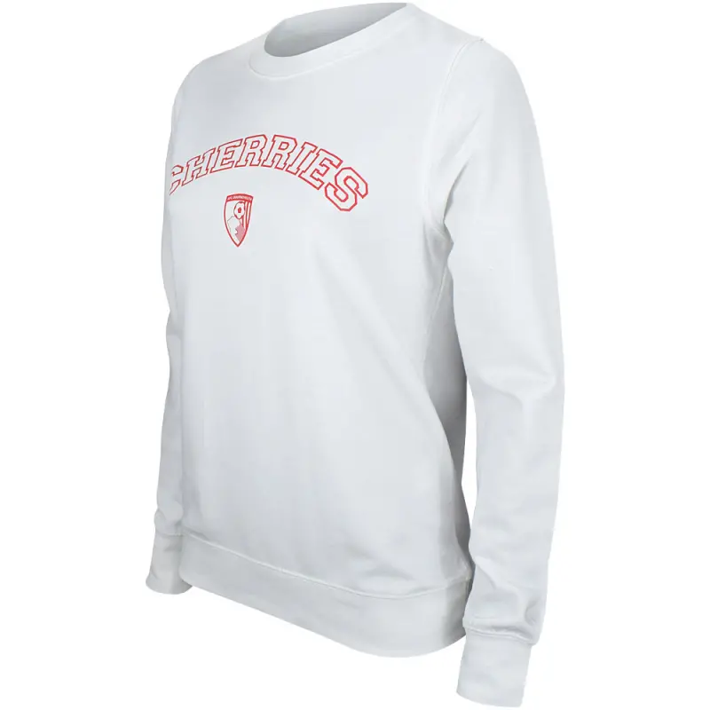 Show your support in style with this white AFC Bournemouth women’s sweatshirt. The relaxed fitting Kelly sweatshirt features a soft cotton outer and warm fleecy backing make it perfect for chilly days, while the Cherries print and club crest on the chest add a stylish finishing touch.