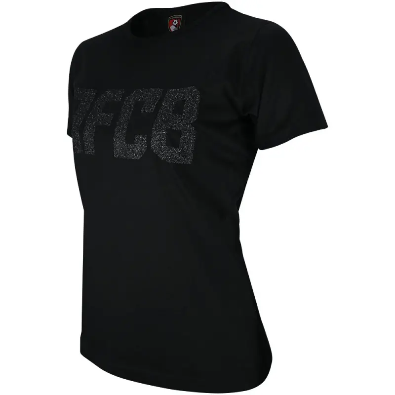 Show your Cherries pride in style with this AFC Bournemouth women’s Phoebe t-shirt in black, a classic everyday essential with a touch of sparkle. Crafted from soft cotton for all-day comfort, the regular fit tee features a flattering feminine cut, short sleeves and a wide round neckline for a relaxed yet stylish look. Finished with a glittery AFCB motif across the chest, it’s the perfect way to add some shine while supporting your team – whether you’re at the match, out and about, or relaxing at home.