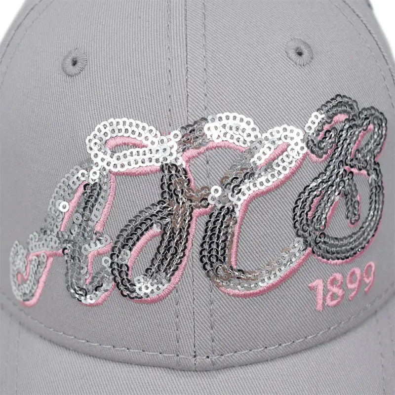 This women’s AFC Bournemouth Script cap has a great standout look, embellished with a sequinned AFCB motif on the crown. The pale grey cap is made from cotton, and features a classic curved peak and 6 panel construction for a comfortable fit. There’s pink detailing on the crown embroidery and around the trim of the peak, and the cap is finished with a velcro adjuster strap for the perfect fit.