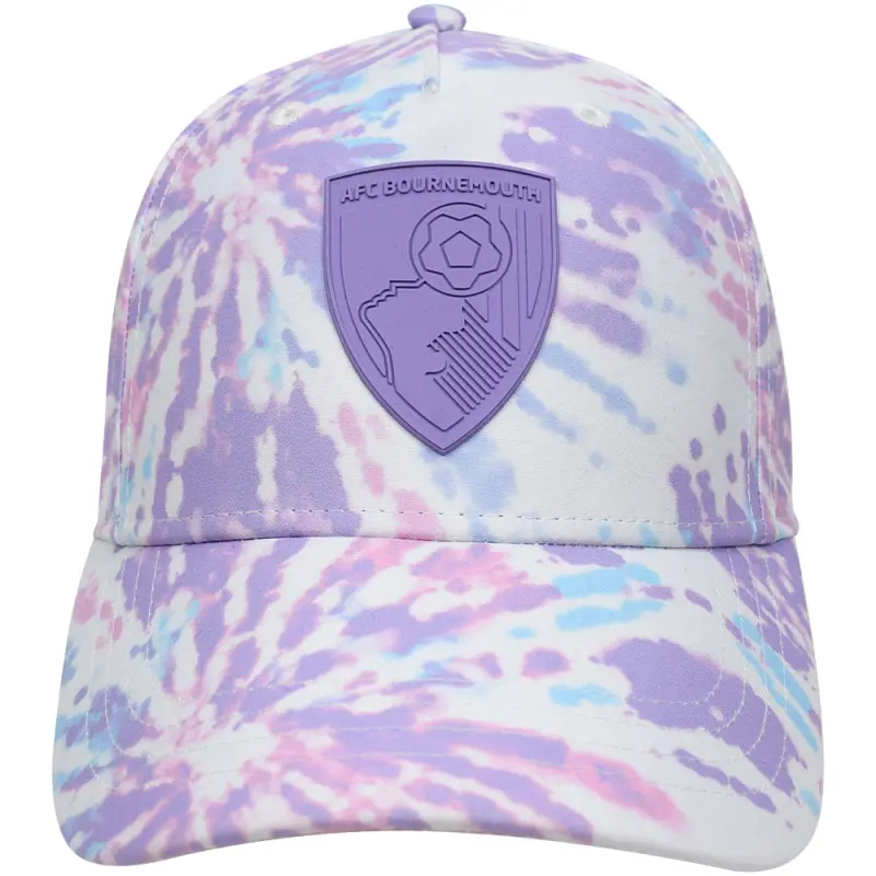 Show your support for the Cherries in style with this stylish AFC Bournemouth women’s Tie Dye cap. Made from cotton and microfibre, it features a cool tie-dye design, with an adjustable strap with buckle closure for a comfortable fit. The curved peak with soft pink underside adds to the style, and the Rubber club crest on the crowd completes the look.