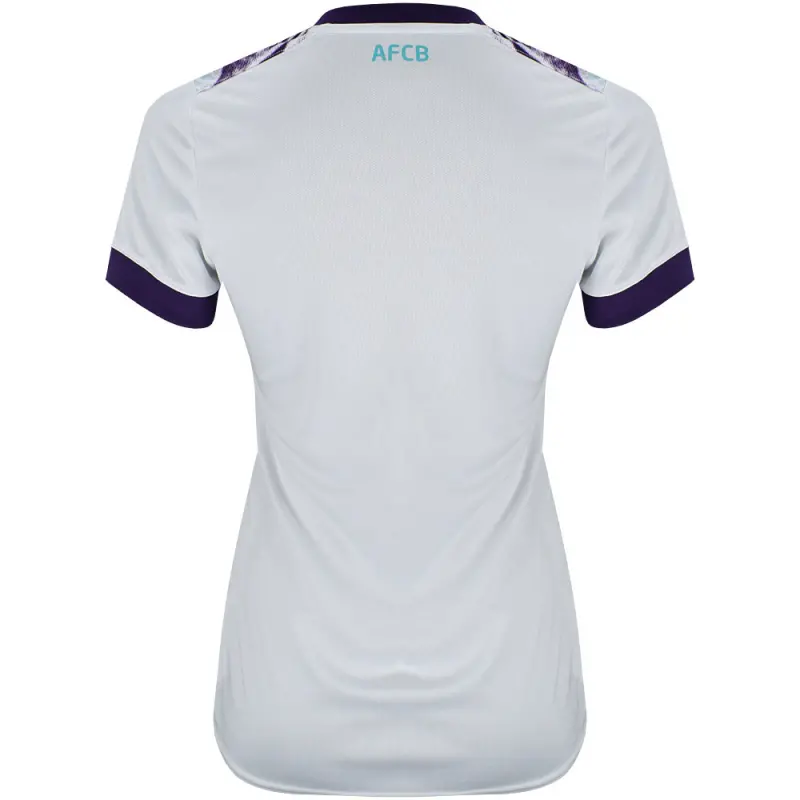 AFC Bournemouth’s away shirt for the 2024-25 Premier League season draw’s it’s inspiration from the famous ‘Pizza Shirt’ worn by the club between 1992-94. Made by kit supplier Umbro, this women’s unsponsored away shirt features a green and purple chevron design on the front, with pops of purple on the neck and sleeves, and green AFCB initialling on the rear neckline. Specifically tailored for women, the shirt is identical to the jersey which will be worn by the first team players, and is finished with Umbro’s embroidered centenary stacked diamond motif, alongside the AFC Bournemouth club crest.